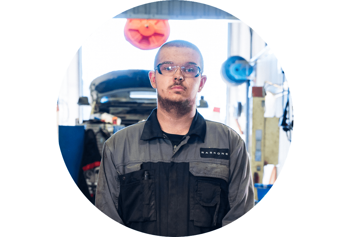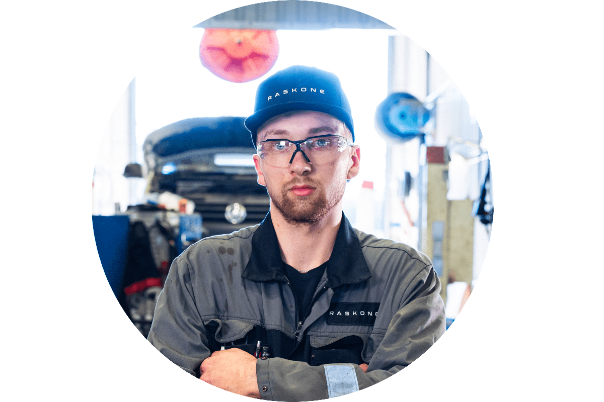”Minua motivoi ajoneuvotekniikan huima kehittyminen ja siihen liittyvät uudet haasteet. Työnantajana Raskoneella parasta on vakaus ja iso verkosto toimipisteitä jotka tukevat toisiaan.”